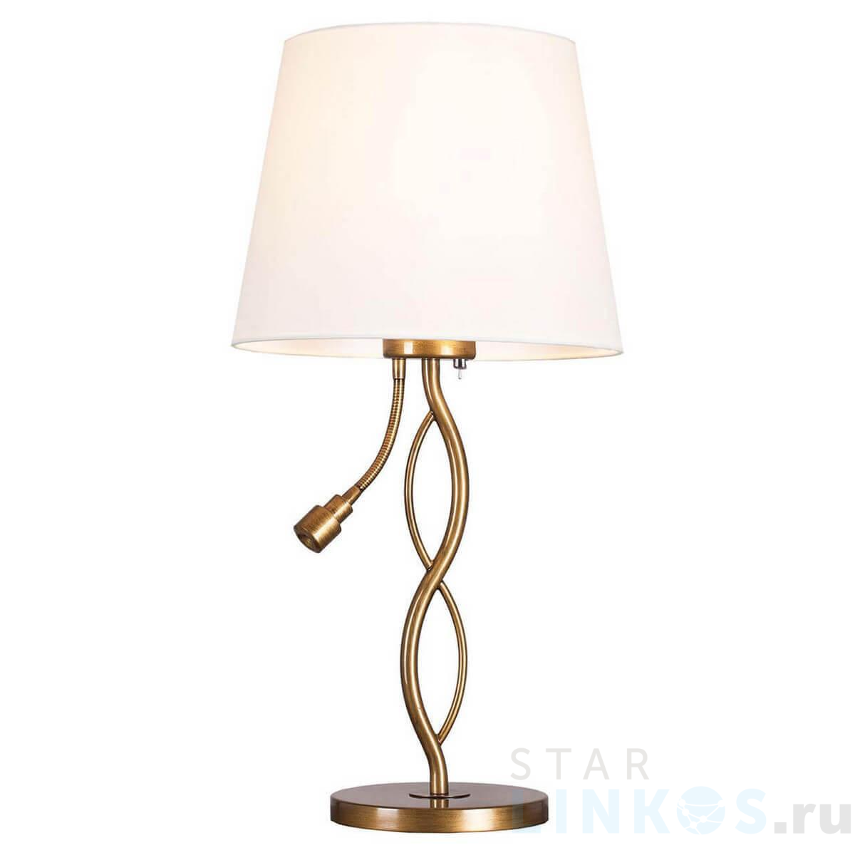 Поставщик рекомендует использовать лампы накаливания с цоколем E27 для освещения площади 3,3 м2. Настольная лампа Lussole Loft LSP-0551 в современном стиле используется в интерьере спальни с установкой на стол.