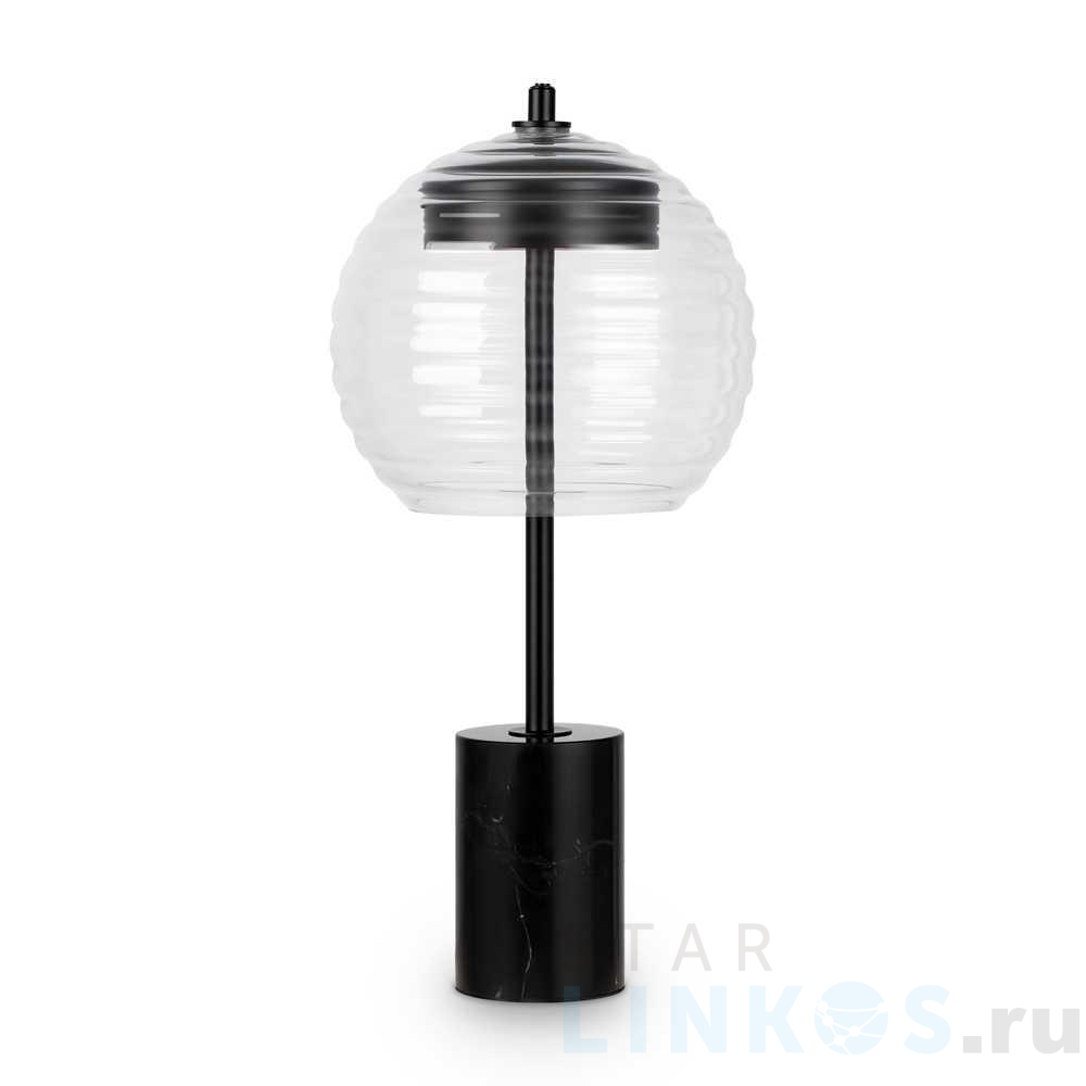 Настольная лампа Maytoni Rueca P060TL-L12BK в современном стиле используется в интерьере кухни с установкой на стол.