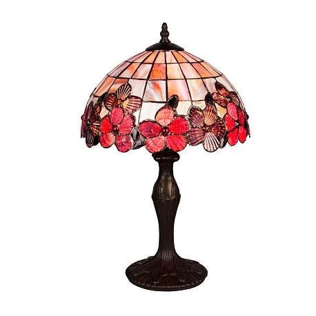 Поставщик рекомендует использовать лампы накаливания с цоколем E27 для освещения площади 3,3 м2. Настольная лампа Omnilux OML-80604-01 в стиле Тиффани используется в интерьере кухни с установкой на стол.