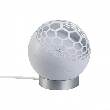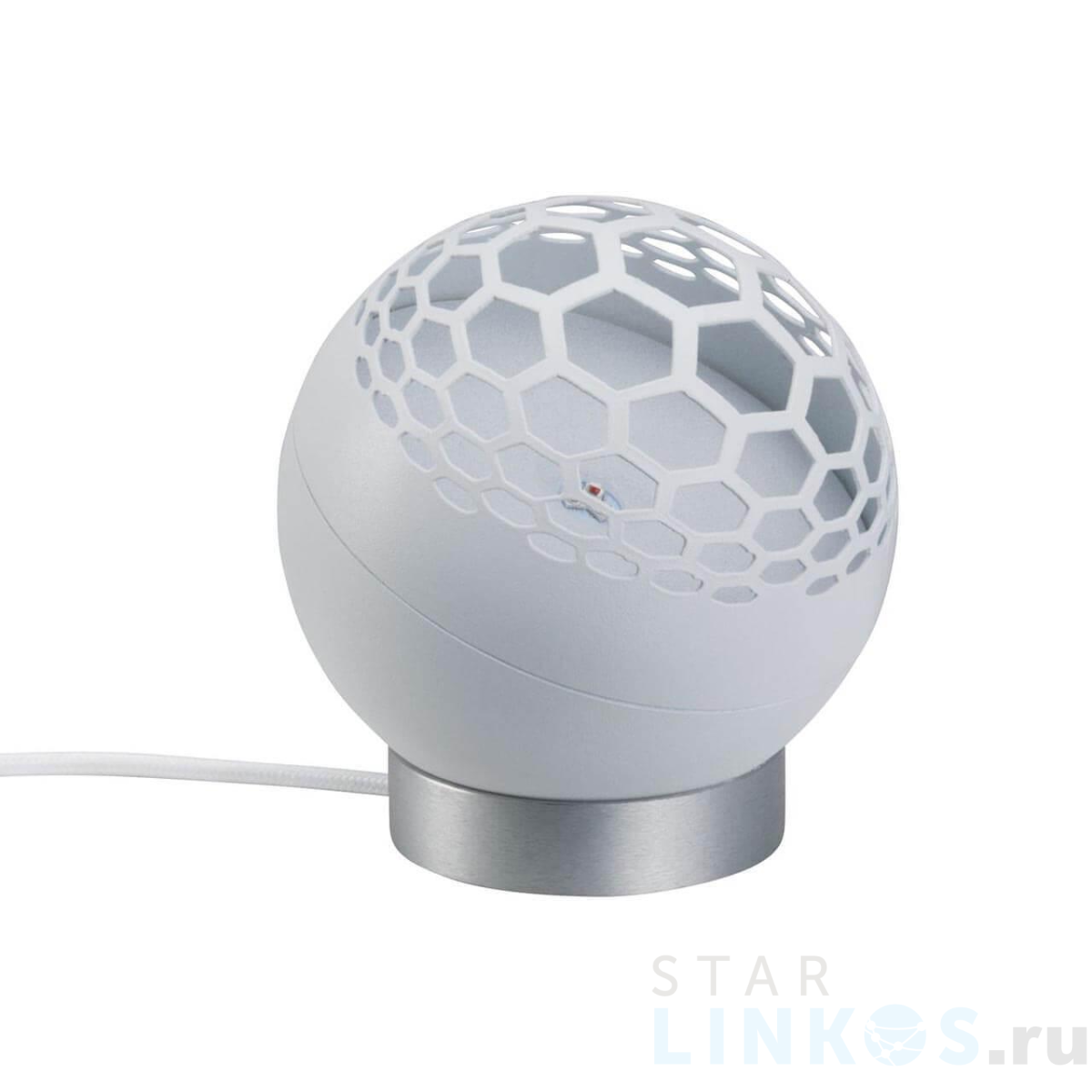 Настольная лампа Paulmann Favia 79696 в современном стиле используется в интерьере спальни с установкой на стол.