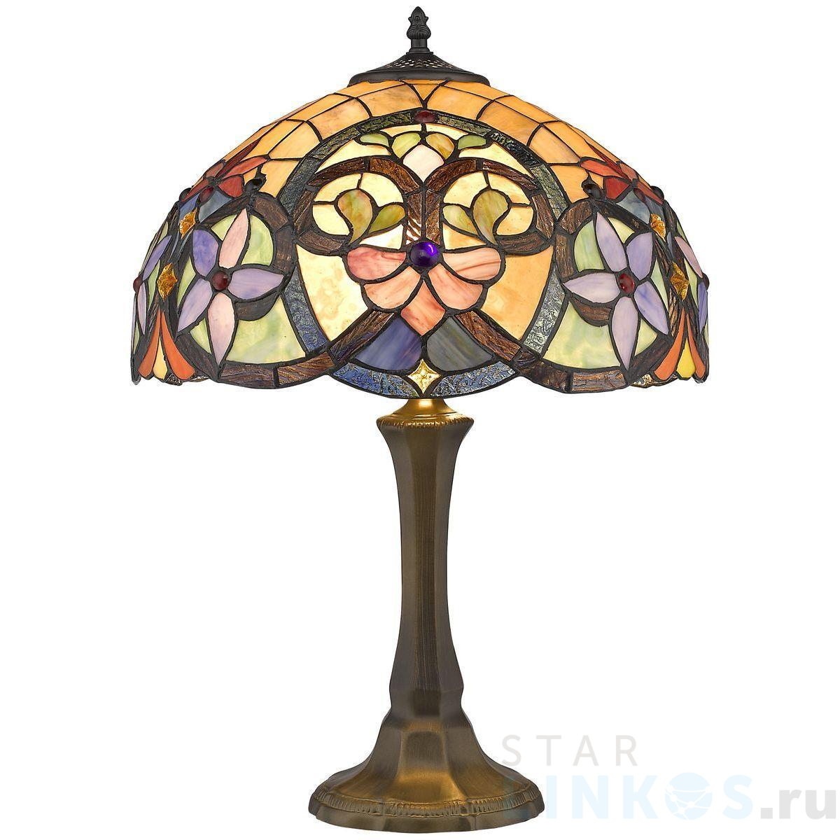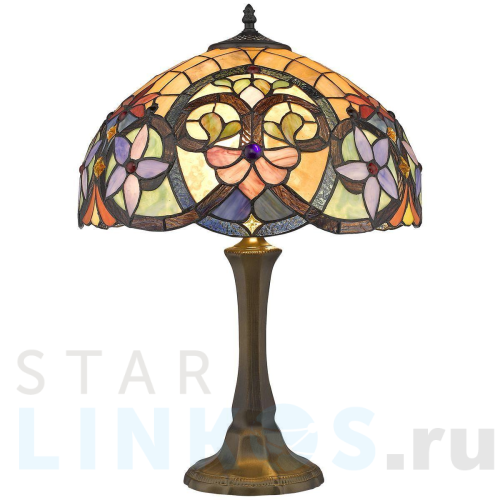 Поставщик рекомендует использовать лампы накаливания с цоколем E27 для освещения площади 6,7 м2. Настольная лампа Velante 818-804-02 в стиле Тиффани используется в интерьере гостиной с установкой на стол.