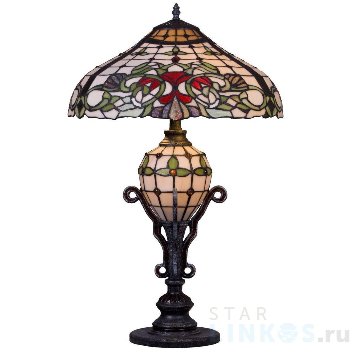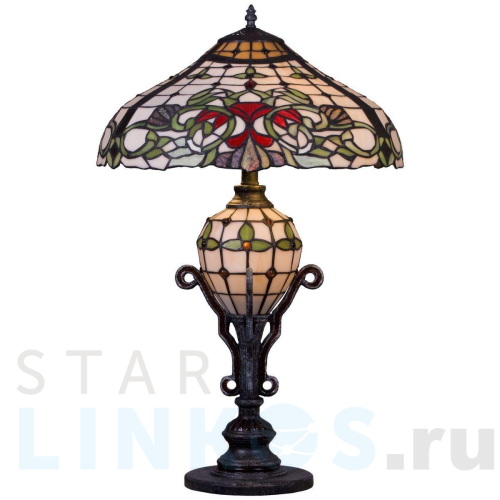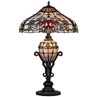 Поставщик рекомендует использовать лампы накаливания с цоколем E27 для освещения площади 6,7 м2. Настольная лампа Velante 844-804-03 в стиле Тиффани используется в интерьере гостиной с установкой на стол.