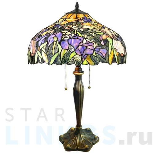 Поставщик рекомендует использовать лампы накаливания с цоколем E27 для освещения площади 9 м2. Настольная лампа Velante 867-804-03 в стиле Тиффани используется в интерьере гостиной с установкой на стол.