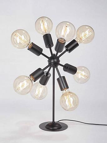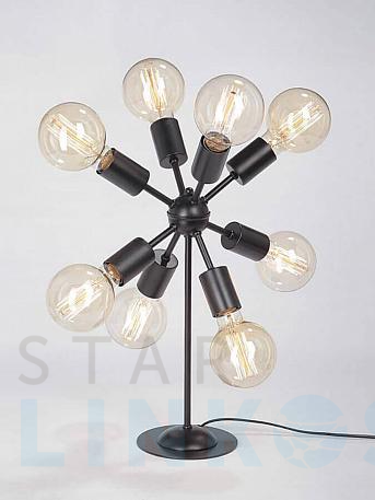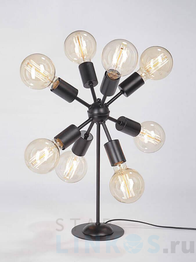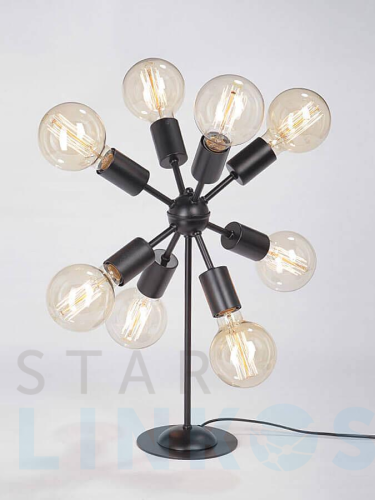 Поставщик рекомендует использовать лампы накаливания с цоколем E27 для освещения площади 26,7 м2. Настольная лампа Vitaluce V4336-1/8L в стиле лофт используется в интерьере спальни с установкой на стол.