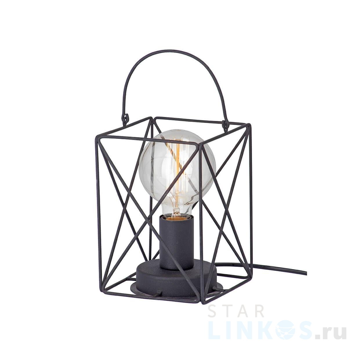 Поставщик рекомендует использовать лампы накаливания с цоколем E27 для освещения площади 3,3 м2. Настольная лампа Vitaluce V4765-1/1L в стиле лофт используется в интерьере спальни с установкой на стол.