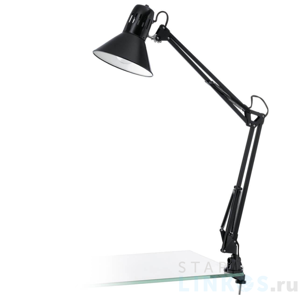 Поставщик рекомендует использовать лампы накаливания с цоколем E27 для освещения площади 2,2 м2. Настольная лампа Eglo Firmo 90873 в современном стиле используется в интерьере офиса с установкой на стол.