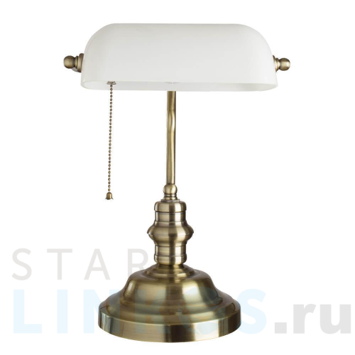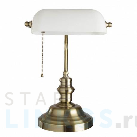 Поставщик рекомендует использовать лампы накаливания с цоколем E27 для освещения площади 3,3 м2. Настольная лампа Arte Lamp Banker A2493LT-1AB в используется в интерьере офиса с установкой на стол.