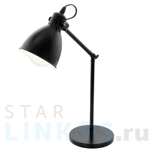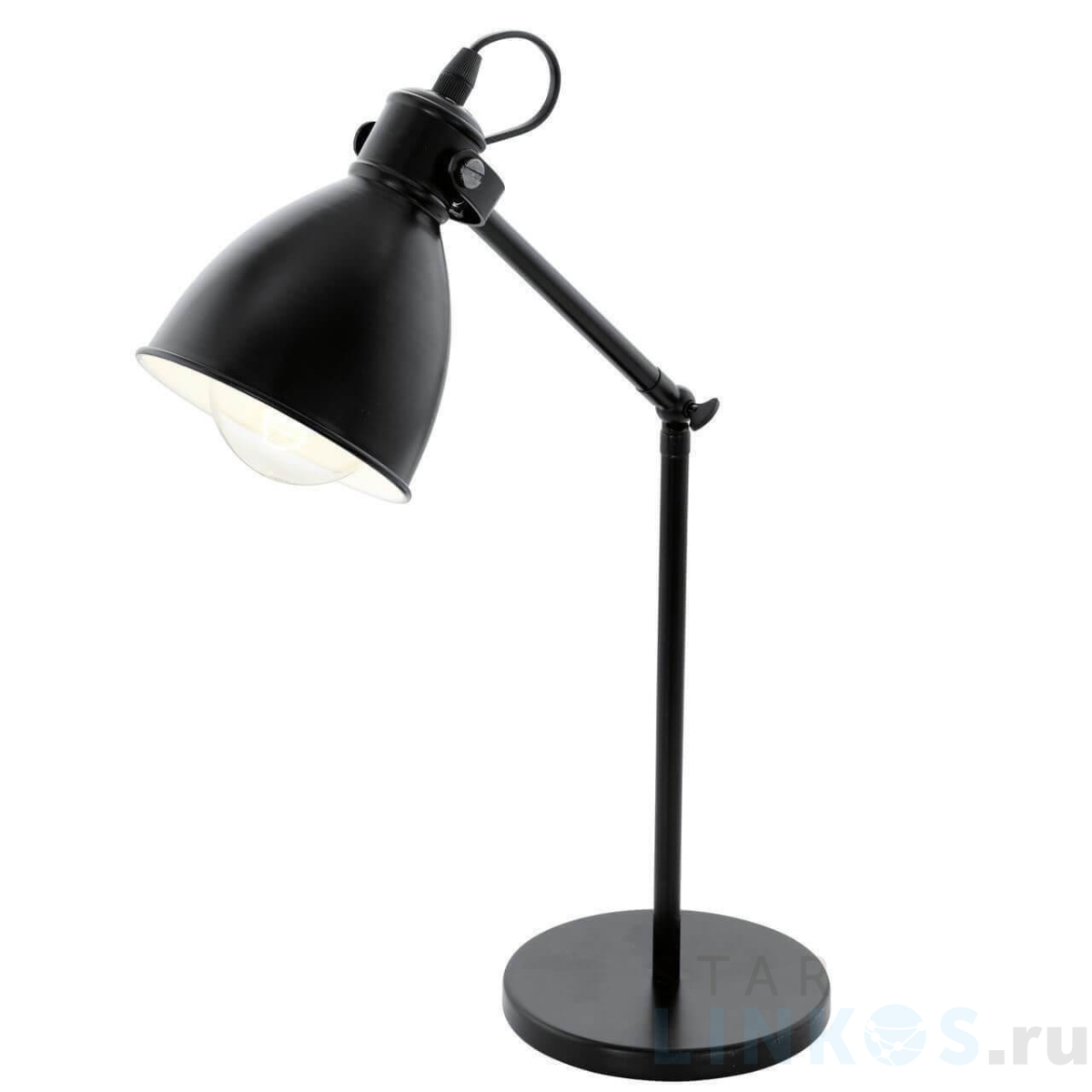Поставщик рекомендует использовать лампы накаливания с цоколем E27 для освещения площади 2,2 м2. Настольная лампа Eglo Priddy 49469 в используется в интерьере офиса с установкой на стол.