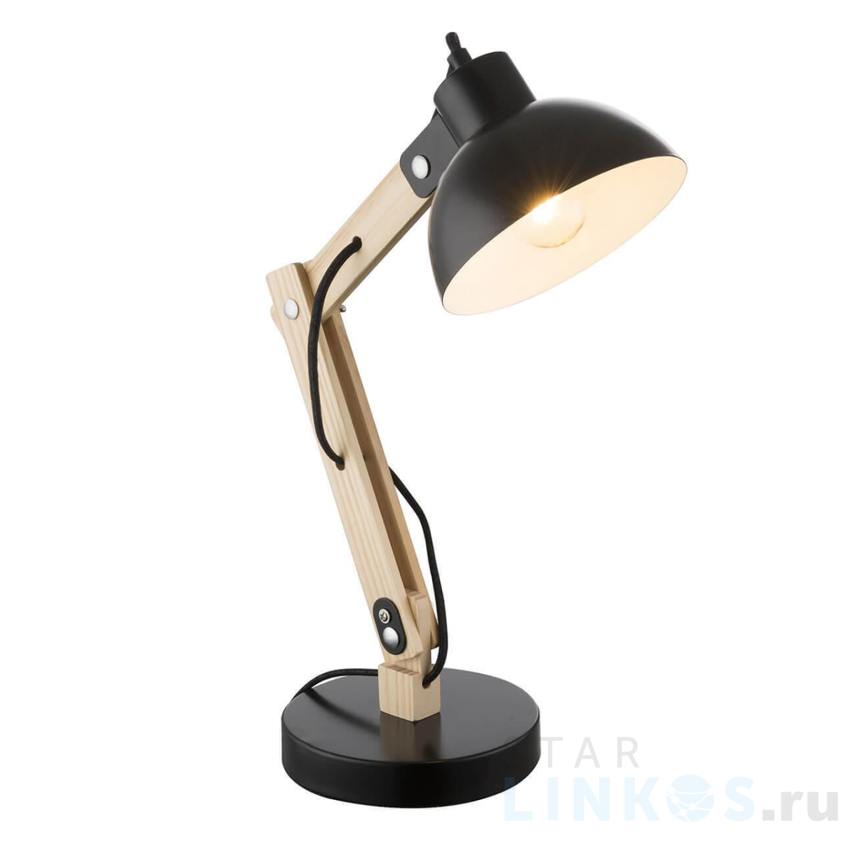 Поставщик рекомендует использовать лампы накаливания с цоколем E27 для освещения площади 2,2 м2. Настольная лампа Globo Tongariro 21504 в кантри-стиле используется в интерьере офиса с установкой на стол.