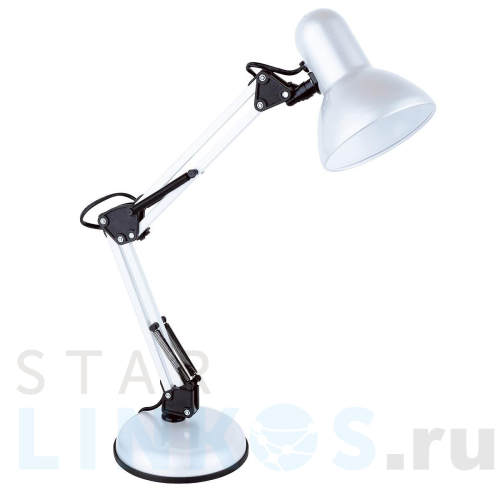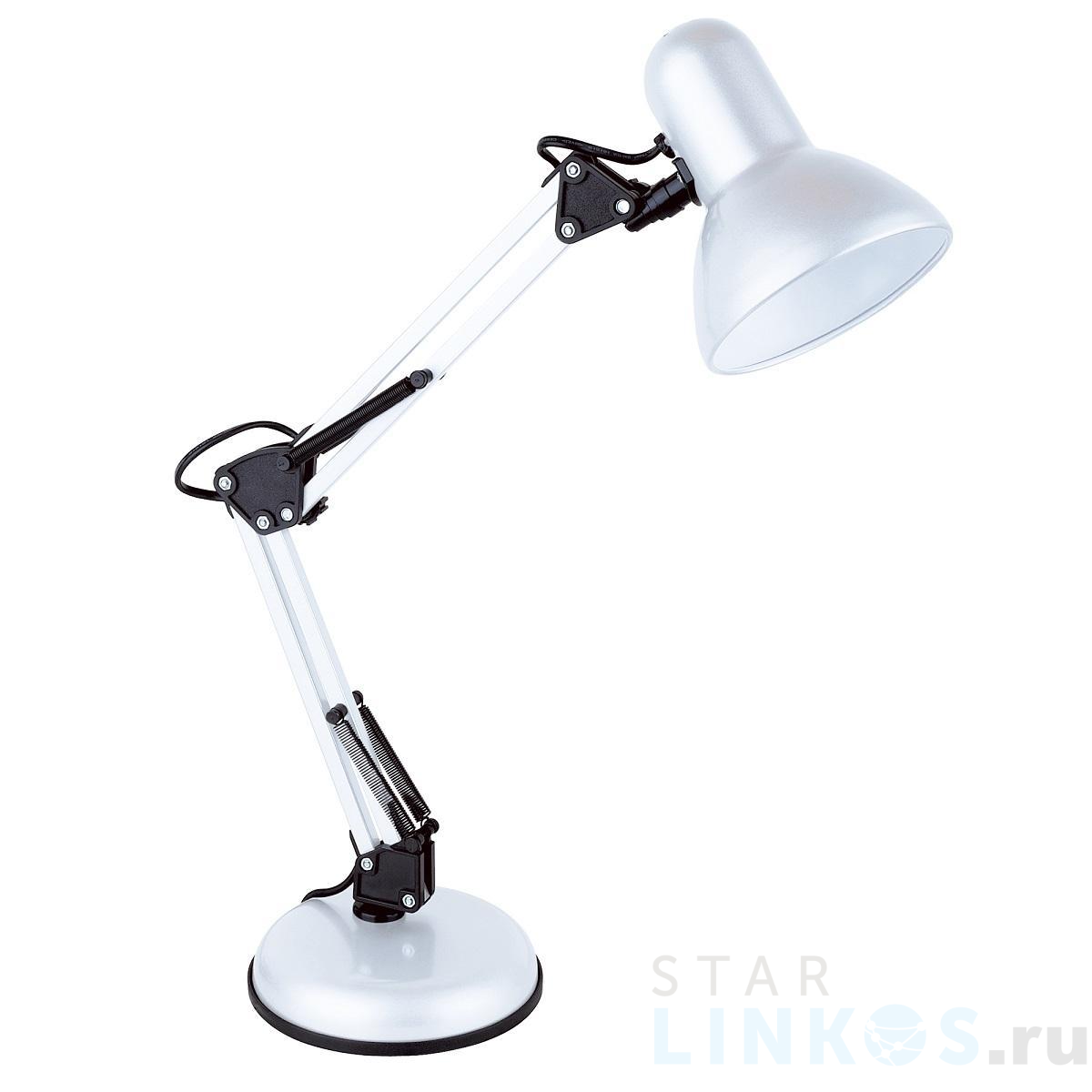 Настольная лампа Lucia Юниор 465 4606400609582 в стиле Хай-Тек используется в интерьере кабинета с установкой на стол.