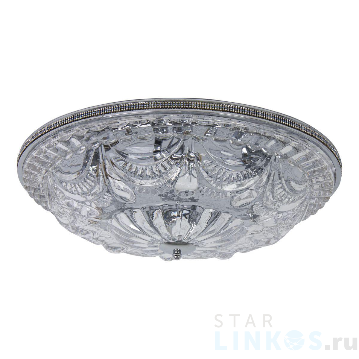 Поставщик рекомендует использовать лампы накаливания с цоколем E14 для освещения площади 18 м2. Потолочный светильник Abrasax Rebekka 1108/50CM-6CR в классическом стиле используется с установкой на потолок.