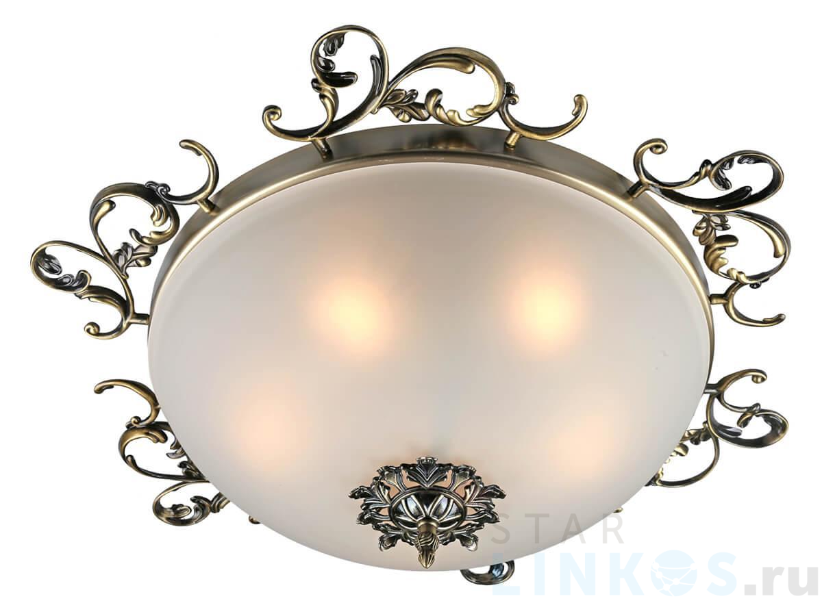Поставщик рекомендует использовать лампы накаливания с цоколем E14 для освещения площади 12 м2. Потолочный светильник Omnilux OML-76507-05 в классическом стиле используется в интерьере гостиной с установкой на потолок.