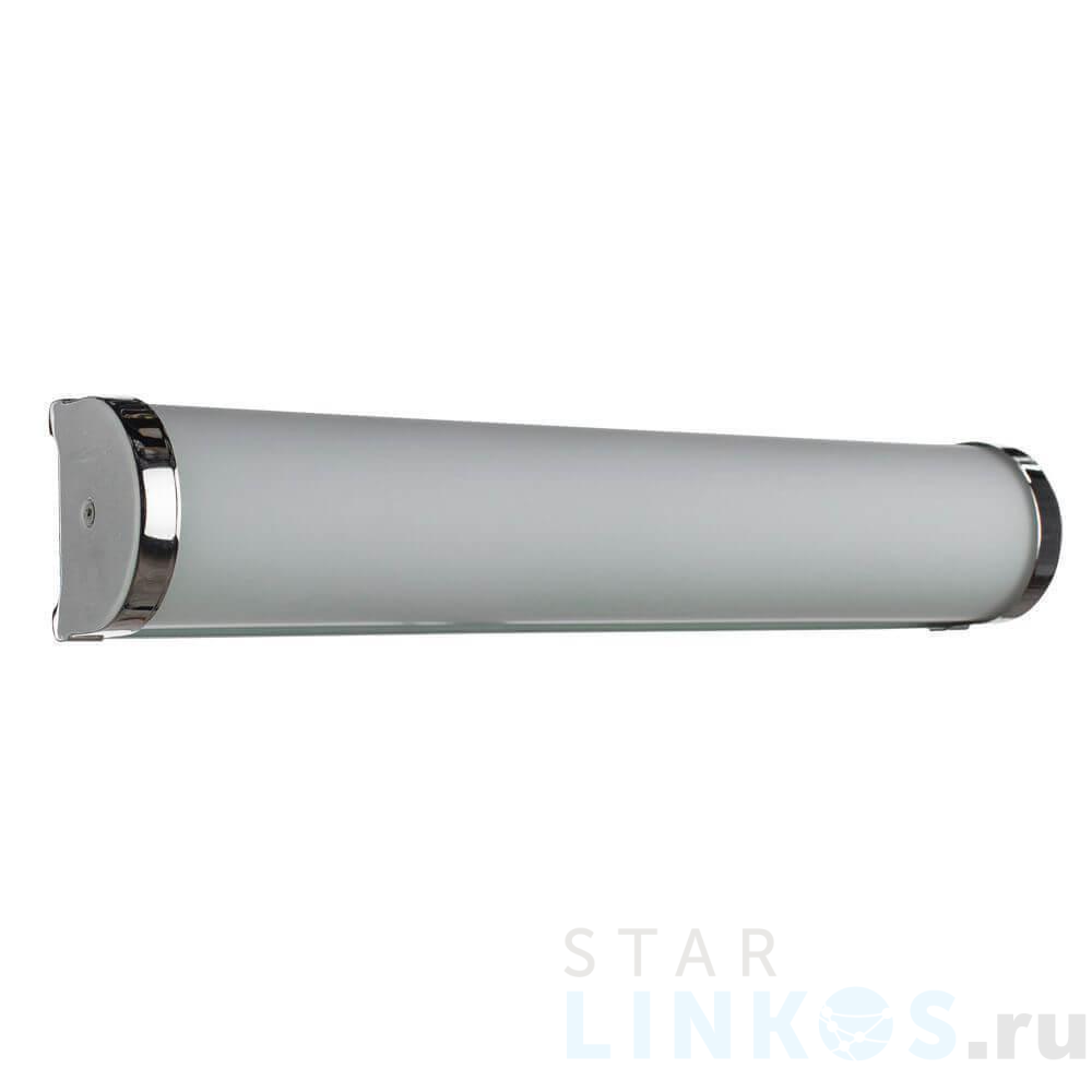 Поставщик рекомендует использовать лампы накаливания с цоколем E14 для освещения площади 6,7 м2. Настенный светильник Arte Lamp Aqua A5210AP-3CC в современном стиле используется в интерьере ванной с установкой на стену.