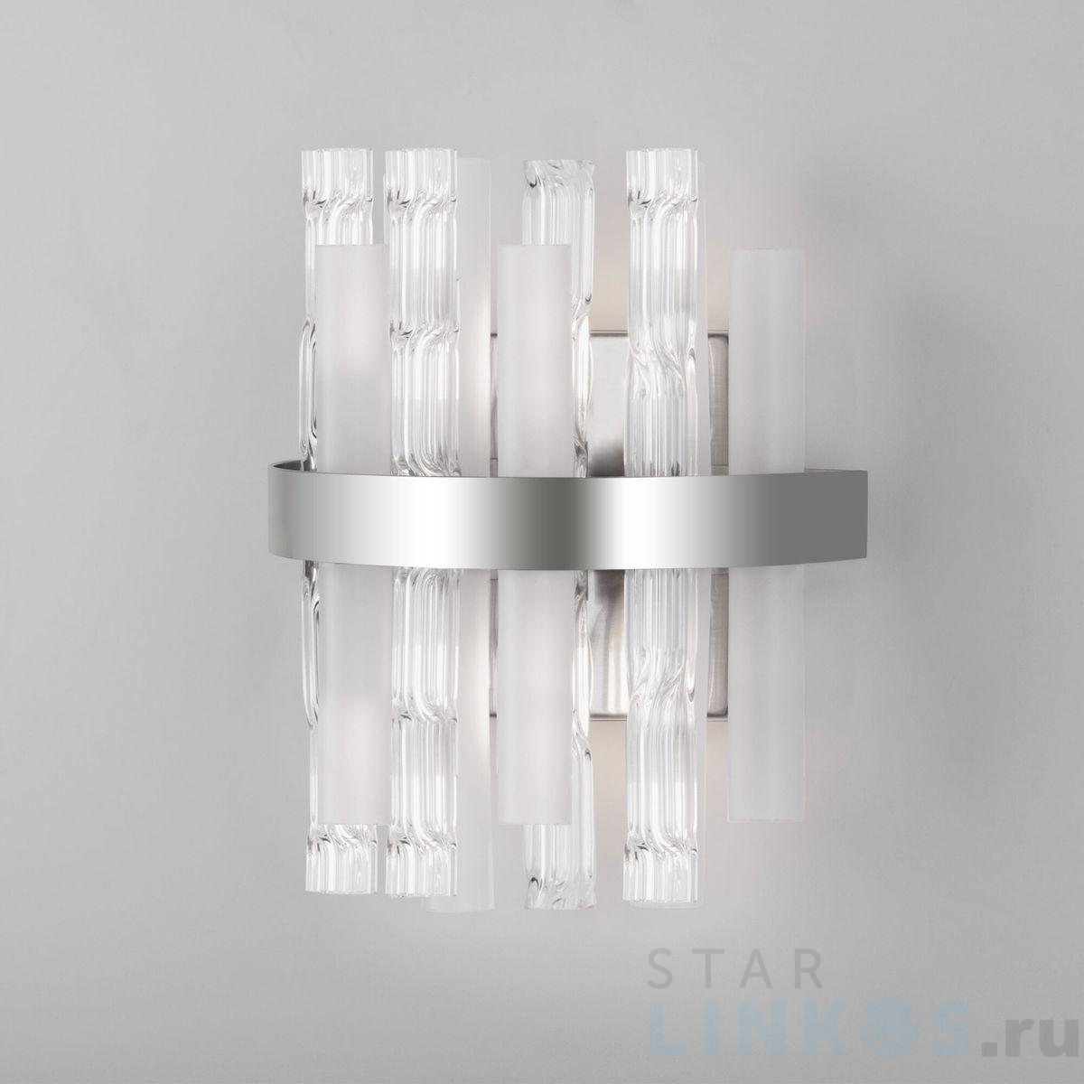 Поставщик рекомендует использовать лампы накаливания с цоколем E14 для освещения площади 3 м2. Настенный светильник Bogates Hollis 367/2 никель в используется в интерьере спальни с установкой на стену.