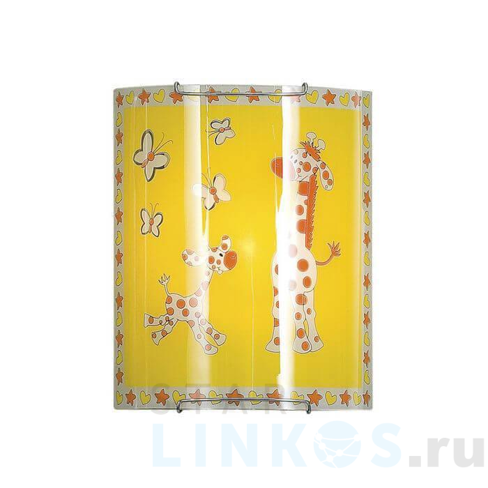 Поставщик рекомендует использовать лампы накаливания с цоколем E27 для освещения площади 5,6 м2. Настенный светильник Citilux Жирафы CL921001 в современном стиле используется в интерьере детской с установкой на стену.