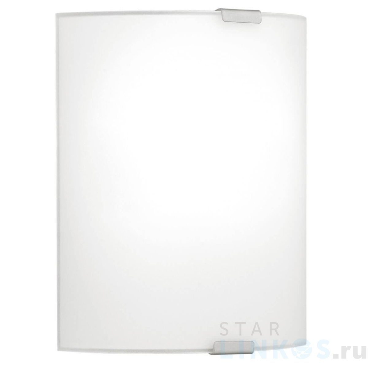 Поставщик рекомендует использовать лампы накаливания с цоколем E27 для освещения площади 3,3 м2. Настенный светильник Eglo Grafik 84028 в современном стиле используется в интерьере спальни с установкой на стену.