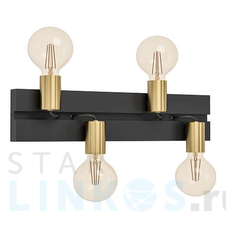 Поставщик рекомендует использовать лампы накаливания с цоколем E27. Настенный светильник Eglo Macchione 900509 в стиле лофт используется в интерьере спальни с установкой на стену.