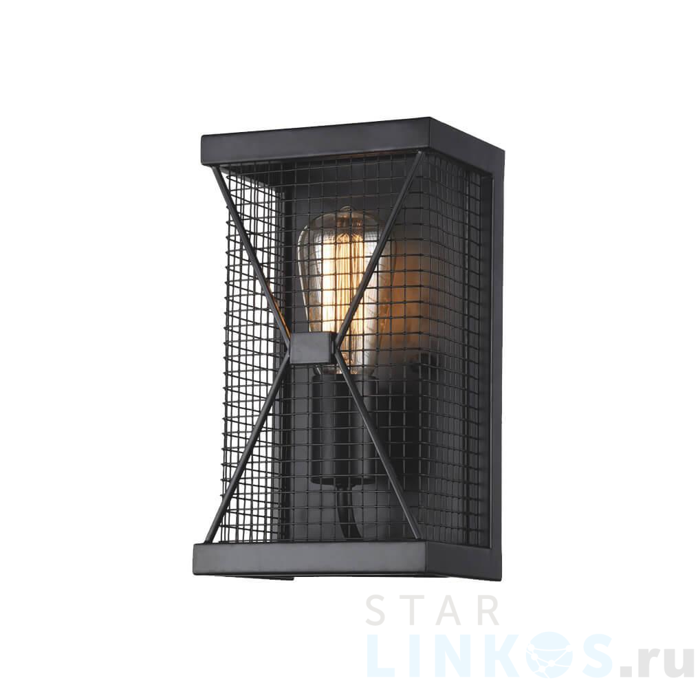 Поставщик рекомендует использовать лампы накаливания с цоколем E27 для освещения площади 3,3 м2. Настенный светильник Favourite Mesh 1784-1W в стиле лофт используется в интерьере прихожей с установкой на стену.