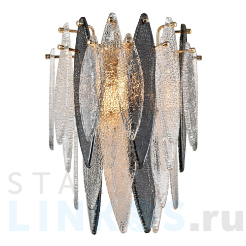 Поставщик рекомендует использовать лампы накаливания с цоколем E14. Настенный светильник iLamp Dolce W2543-1 GD в используется в интерьере гостиной с установкой на стену.