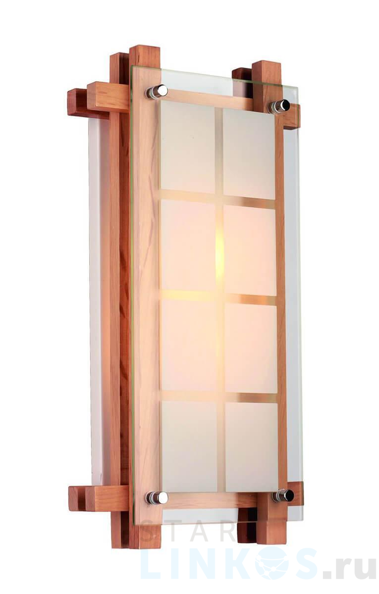 Поставщик рекомендует использовать лампы накаливания с цоколем E14 для освещения площади 4,4 м2. Настенный светильник Omnilux OML-40511-02 в кантри-стиле используется в интерьере офиса с установкой на стену.