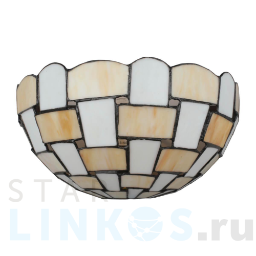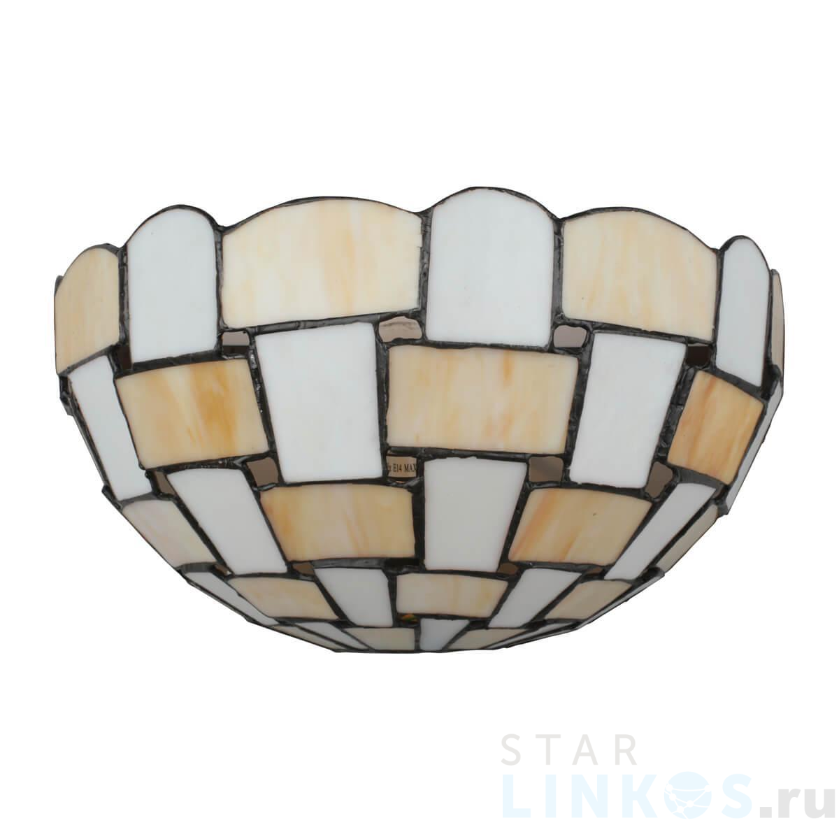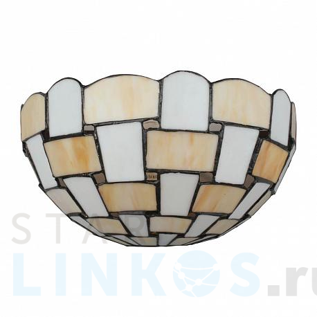 Поставщик рекомендует использовать лампы накаливания с цоколем E14 для освещения площади 2,2 м2. Настенный светильник Omnilux OML-80101-01 в стиле Тиффани используется в интерьере кухни с установкой на стену.