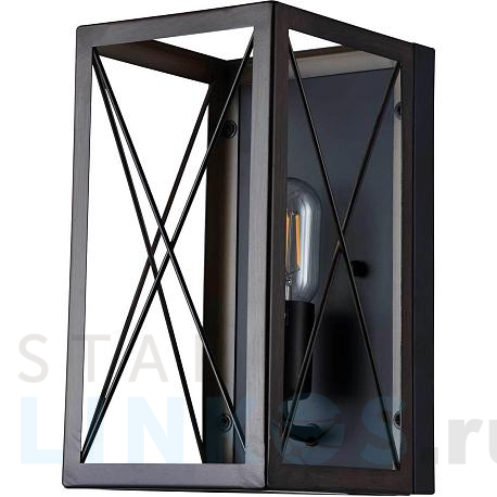 Поставщик рекомендует использовать лампы накаливания с цоколем E27 для освещения площади 2,2 м2. Настенный светильник Stilfort Kaizer 3004/08/01W в стиле лофт используется в интерьере спальни с установкой на стену.