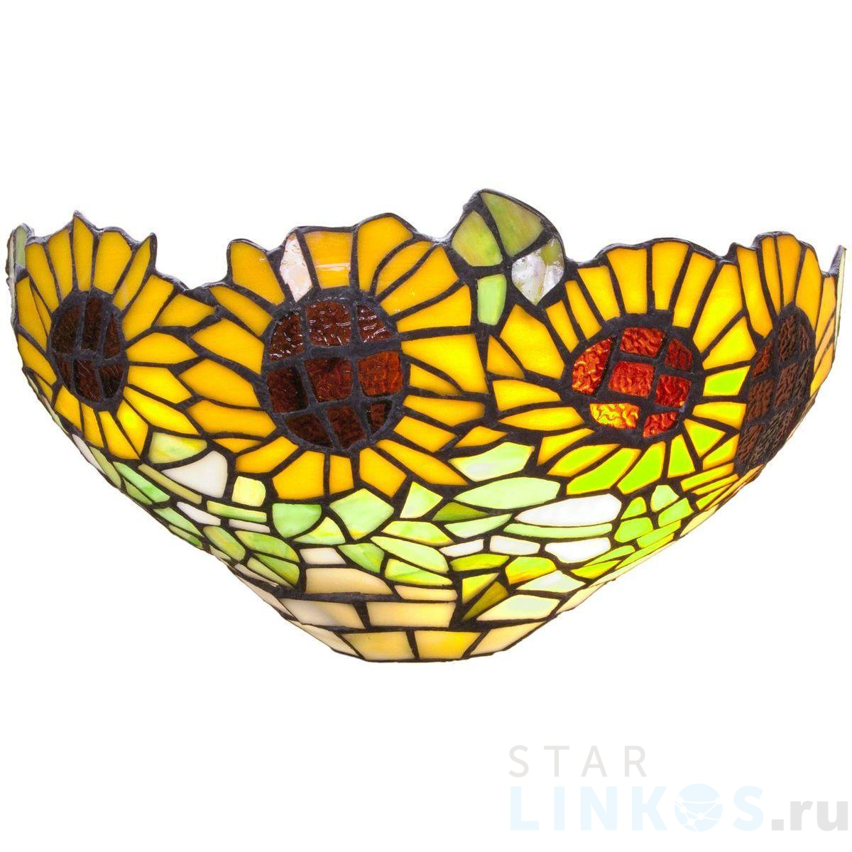 Поставщик рекомендует использовать лампы накаливания с цоколем E27 для освещения площади 2,2 м2. Настенный светильник Velante 821-801-01 в стиле Тиффани используется в интерьере спальни с установкой на стену.