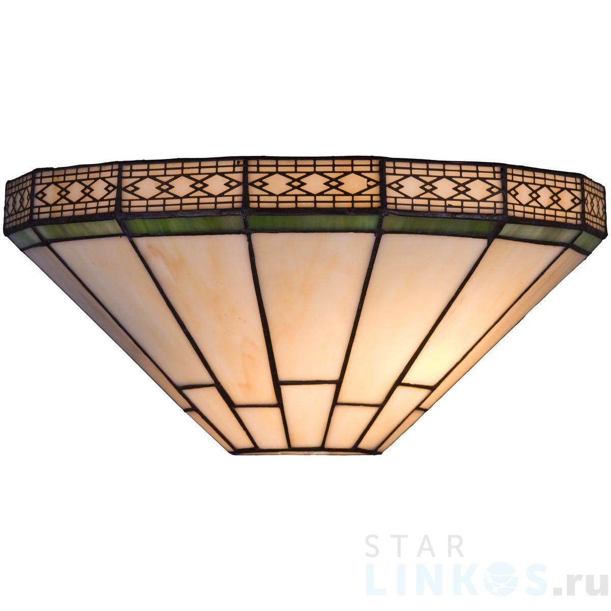 Поставщик рекомендует использовать лампы накаливания с цоколем E27 для освещения площади 2,2 м2. Настенный светильник Velante 857-801-01 в стиле Тиффани используется в интерьере прихожей с установкой на стену.