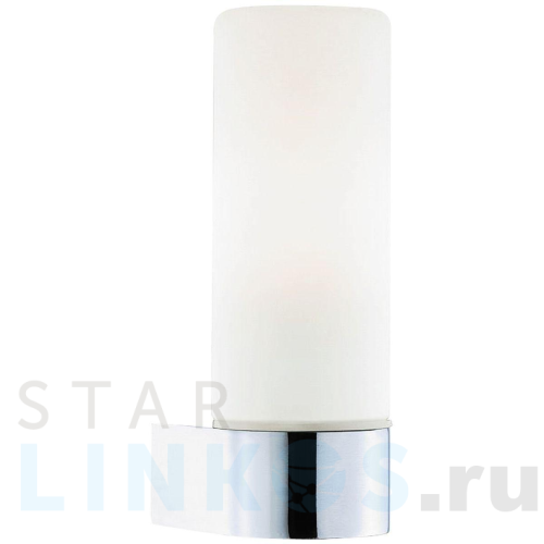 Поставщик рекомендует использовать лампы накаливания с цоколем E14 для освещения площади 2 м2. Настенный светильник Velante 259-101-01 в современном стиле используется в интерьере ванной с установкой на стену.