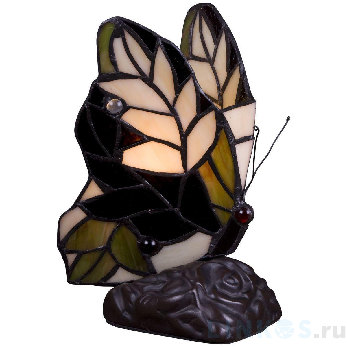 Поставщик рекомендует использовать лампы накаливания с цоколем E14 для освещения площади 1,4 м2. Светильник-ночник Velante 803-804-01 в стиле Тиффани используется в интерьере спальни с установкой на стол.