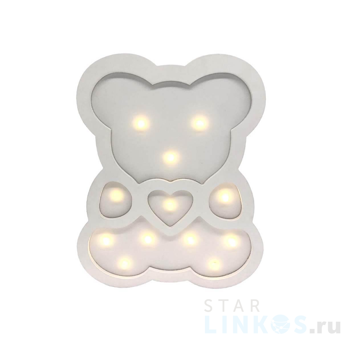 Светильник-ночник Apeyron Мишка 12-176 в современном стиле используется в интерьере детской с установкой на стол.