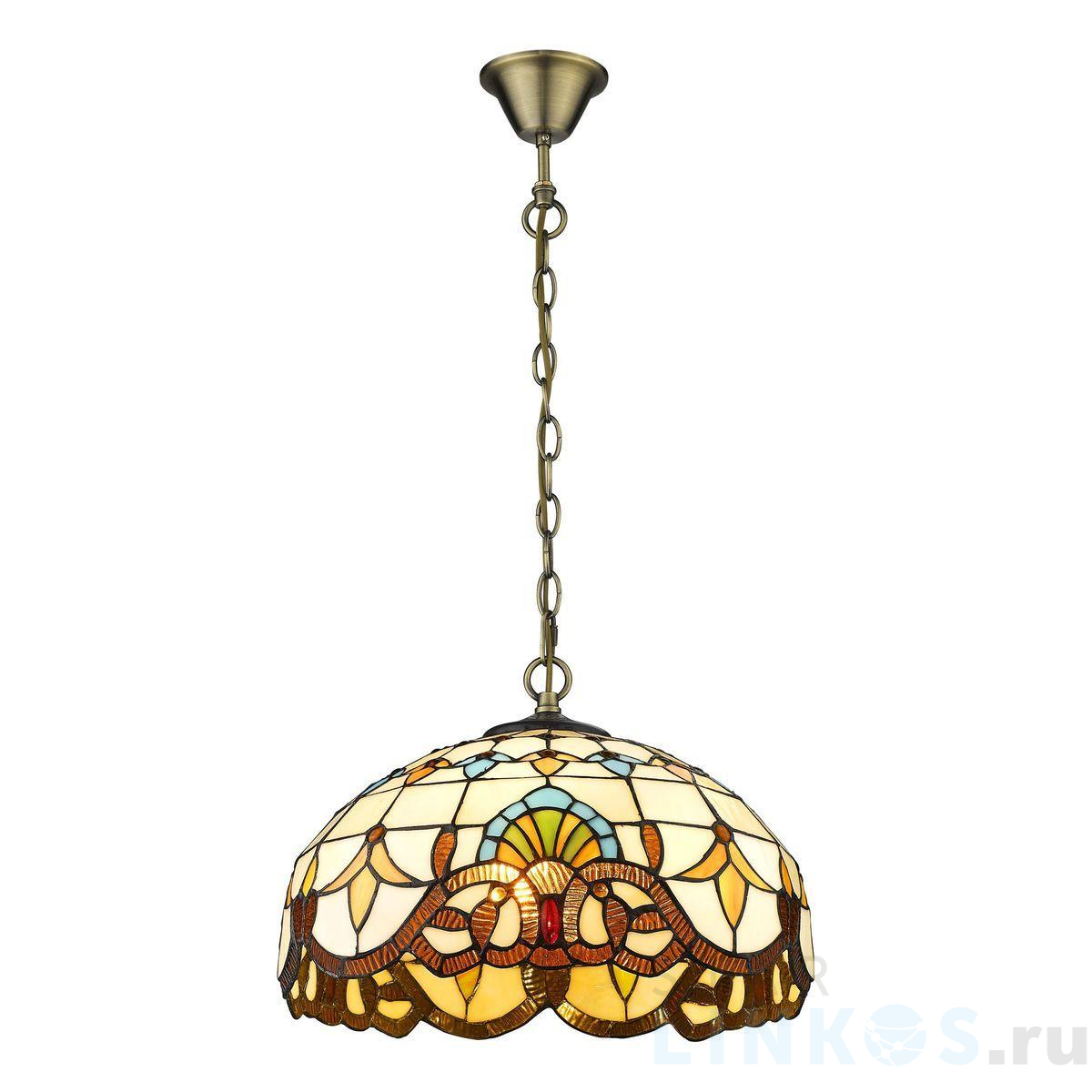 Поставщик рекомендует использовать лампы накаливания с цоколем E27 для освещения площади 6 м2. Подвесной светильник Velante 830-806-02 в стиле Тиффани используется в интерьере кухни с установкой на потолок.