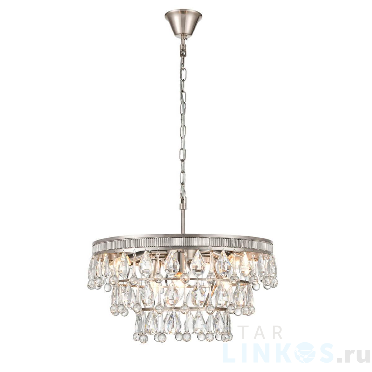 Поставщик рекомендует использовать лампы накаливания с цоколем E14 для освещения площади 13,3 м2. Подвесная люстра Vele Luce Augostina VL3253P06 в классическом стиле используется с установкой на потолок.