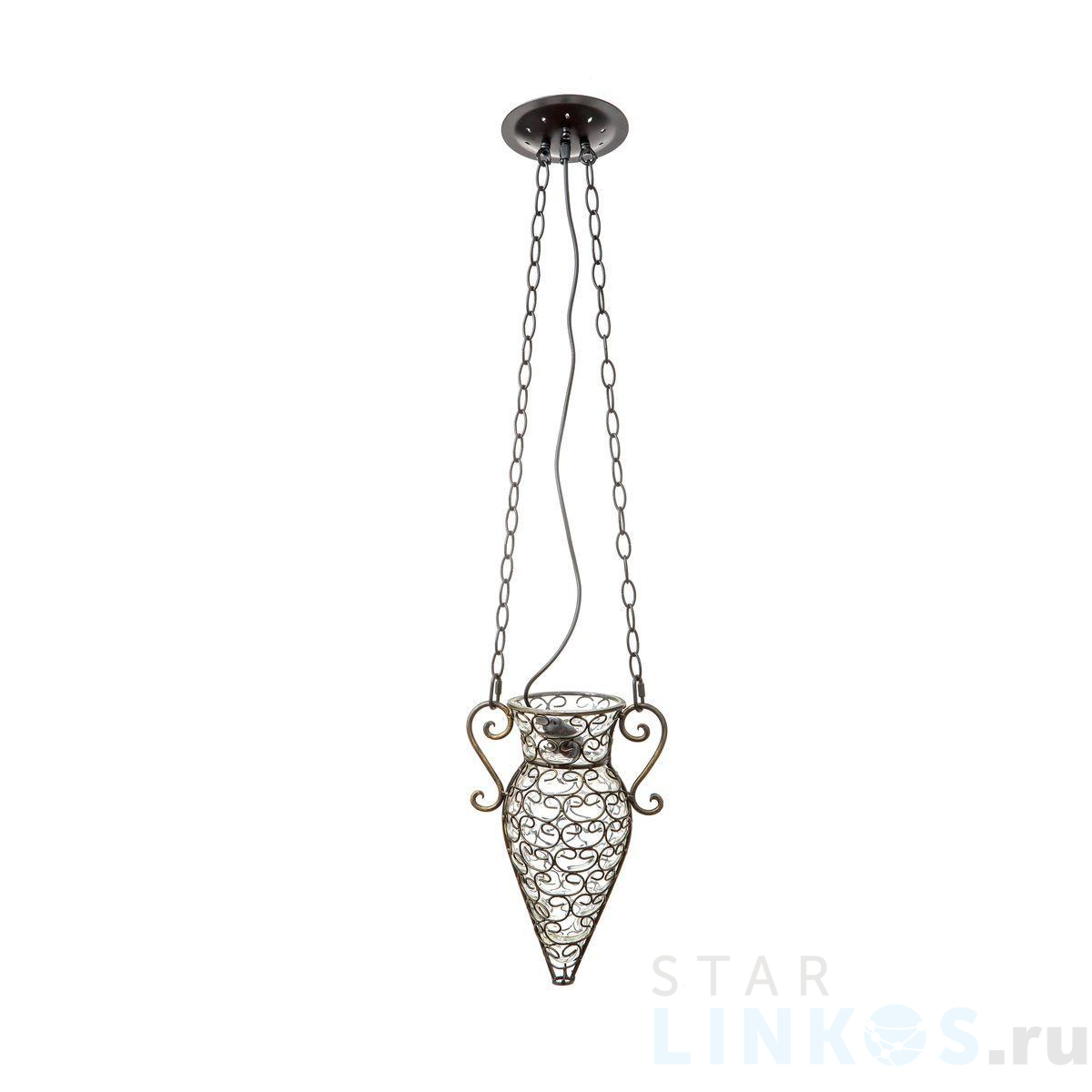 Поставщик рекомендует использовать лампы накаливания с цоколем E27 для освещения площади 4 м2. Подвесной светильник Abrasax Irma 220157 в кантри-стиле используется с установкой на потолок.