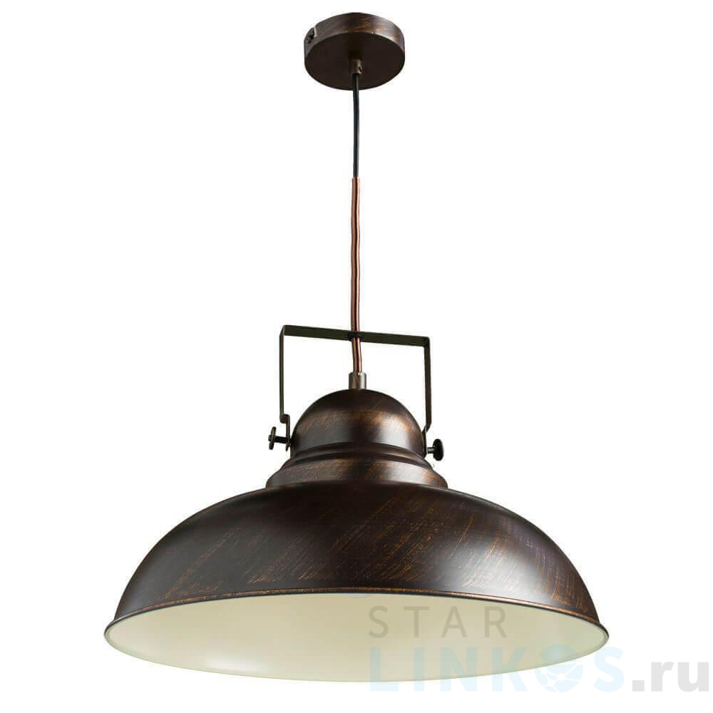 Поставщик рекомендует использовать лампы накаливания с цоколем E27 для освещения площади 4,2 м2. Подвесной светильник Arte Lamp Martin A5213SP-1BR в стиле лофт используется в интерьере офиса с установкой на потолок.