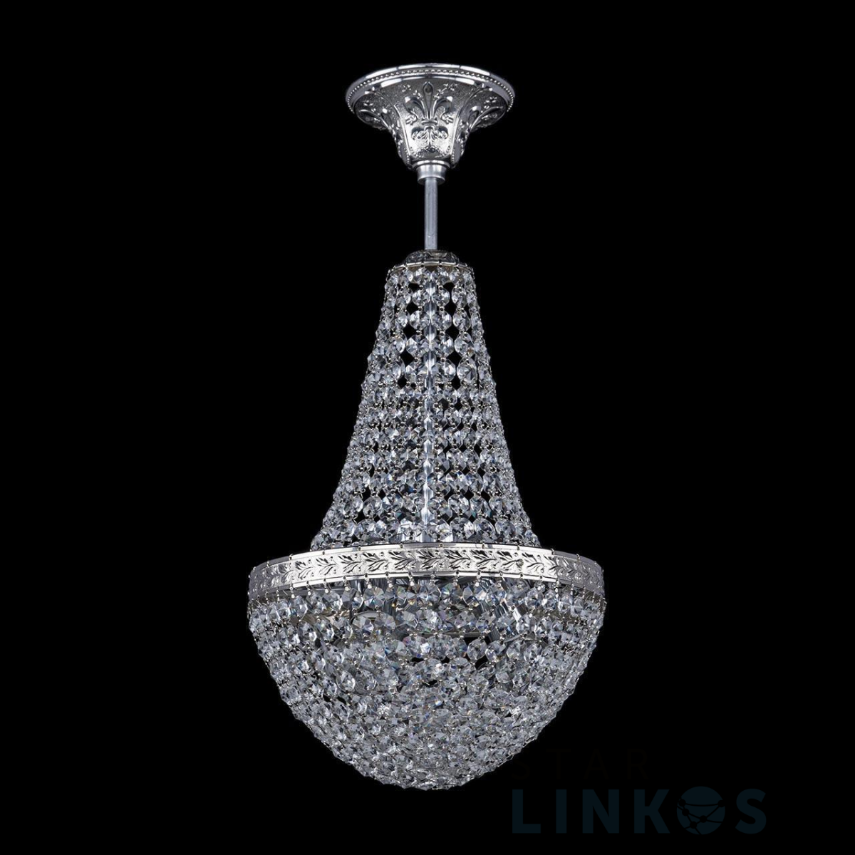 Поставщик рекомендует использовать лампы накаливания с цоколем E14 для освещения площади 6,7 м2. Подвесной светильник Bohemia Ivele 19321/H2/25IV Ni в классическом стиле используется в интерьере прихожей с установкой на потолок.