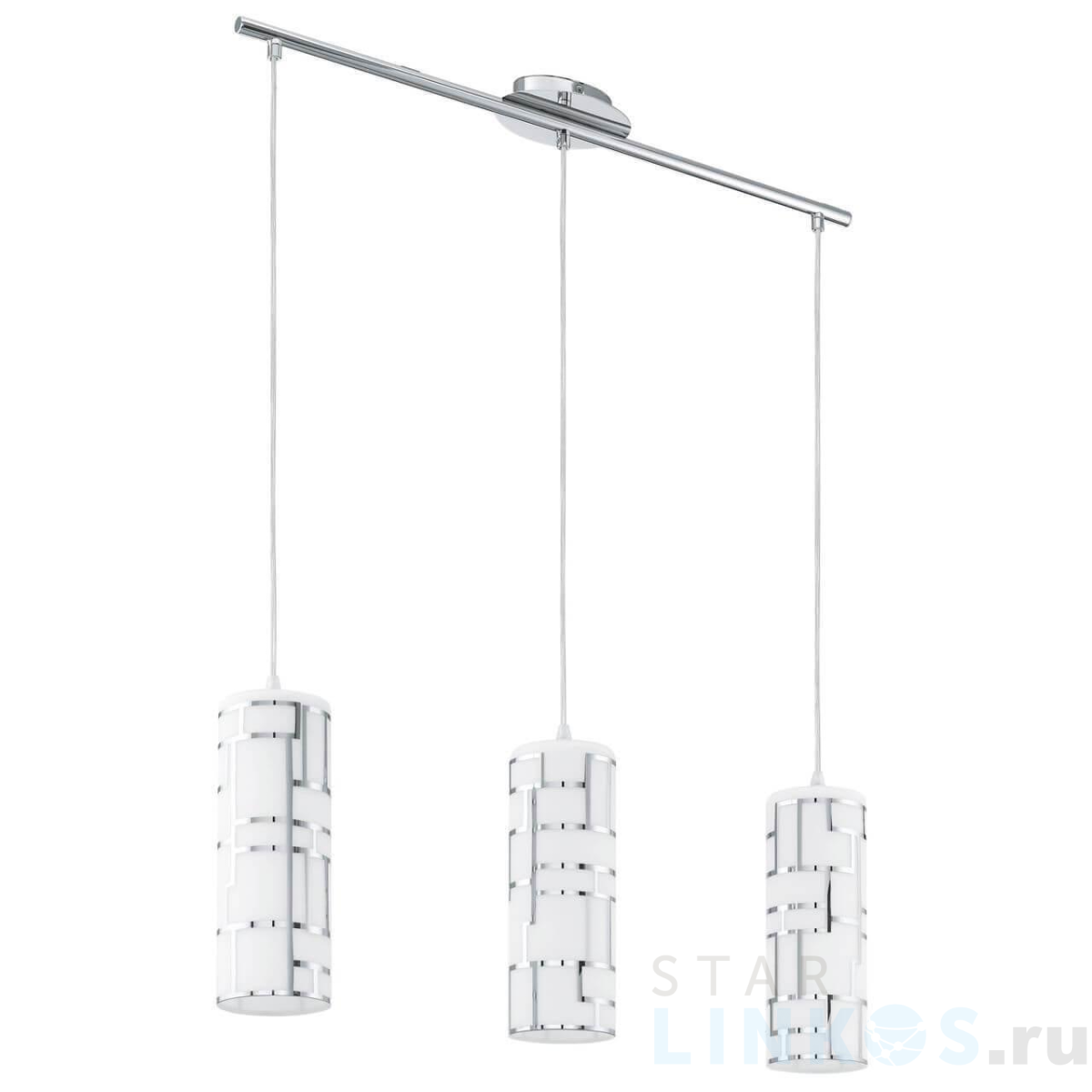 Поставщик рекомендует использовать лампы накаливания с цоколем E27 для освещения площади 10 м2. Подвесной светильник Eglo Bayman 92563 в современном стиле используется в интерьере кухни с установкой на потолок.