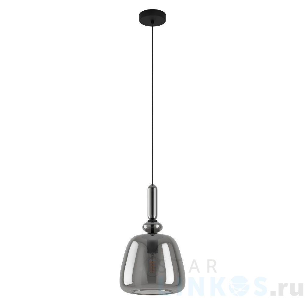 Поставщик рекомендует использовать лампы накаливания с цоколем E27. Подвесной светильник Eglo Bovino 39997 в современном стиле используется в интерьере спальни с установкой на потолок.