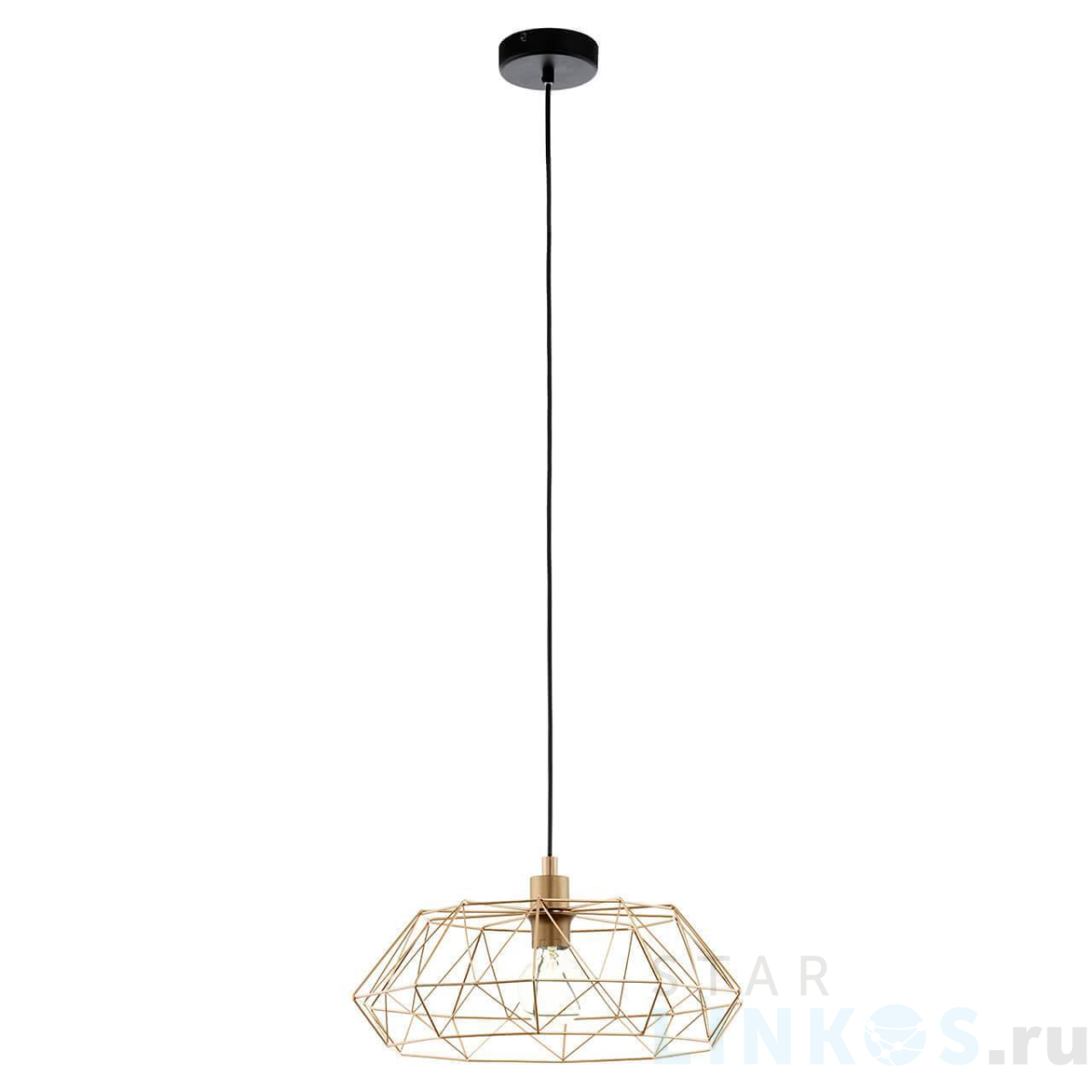 Поставщик рекомендует использовать лампы накаливания с цоколем E27 для освещения площади 3,3 м2. Подвесной светильник Eglo Carlton 2 49488 в стиле лофт используется в интерьере прихожей с установкой на потолок.