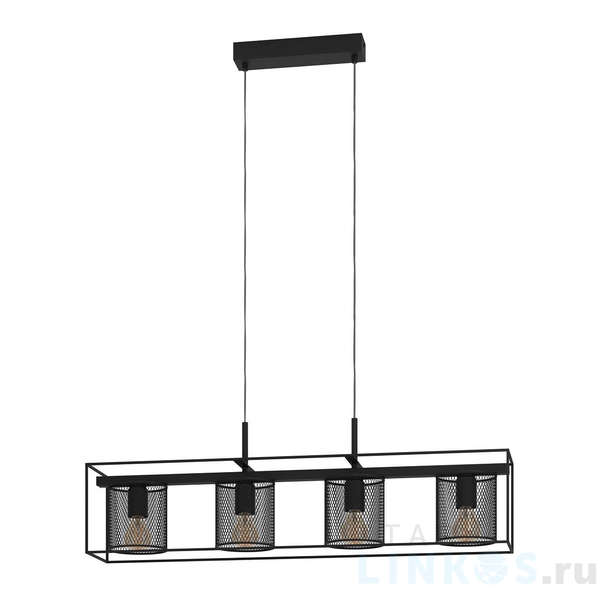 Поставщик рекомендует использовать лампы накаливания с цоколем E27. Подвесной светильник Eglo Catterick 43773 в стиле лофт используется в интерьере гостиной с установкой на потолок.