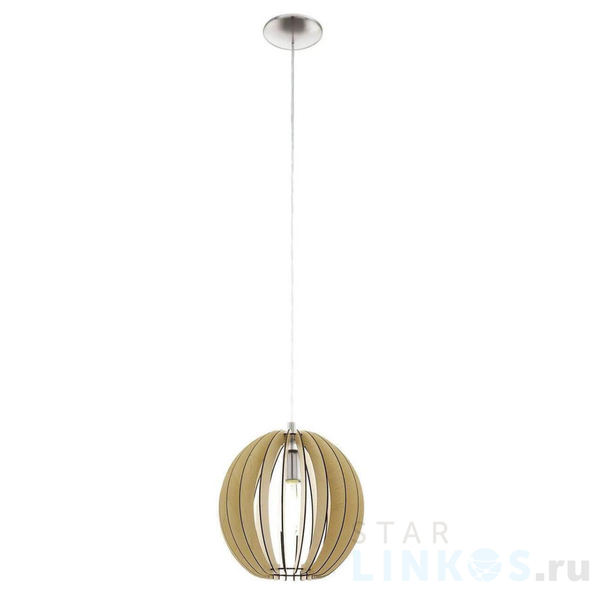 Поставщик рекомендует использовать лампы накаливания с цоколем E27 для освещения площади 3,3 м2. Подвесной светильник Eglo Cossano 94764 в используется в интерьере прихожей с установкой на потолок.