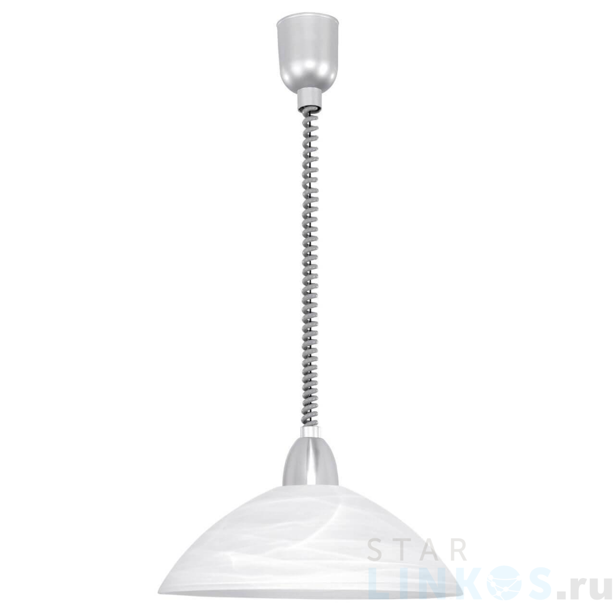 Поставщик рекомендует использовать лампы накаливания с цоколем E27 для освещения площади 3,3 м2. Подвесной светильник Eglo Lord 2 87008 в используется в интерьере кухни с установкой на потолок.