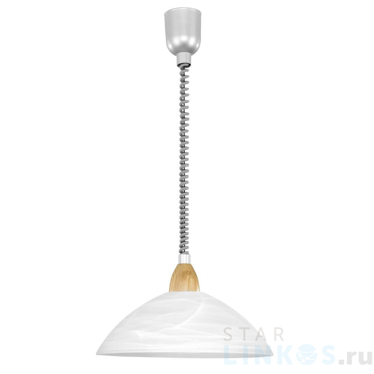 Поставщик рекомендует использовать лампы накаливания с цоколем E27 для освещения площади 3,3 м2. Подвесной светильник Eglo Lord 2 87009 в используется в интерьере кухни с установкой на потолок.
