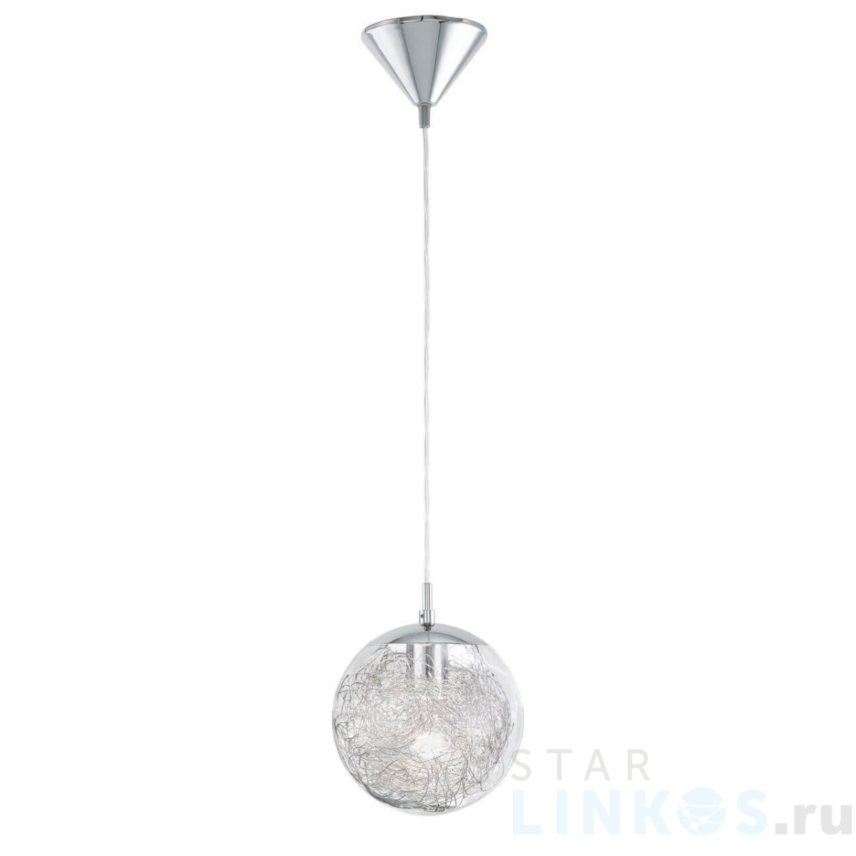 Поставщик рекомендует использовать лампы накаливания с цоколем E27 для освещения площади 3,3 м2. Подвесной светильник Eglo Luberio 93073 в стиле Хай-Тек используется в интерьере спальни с установкой на потолок.