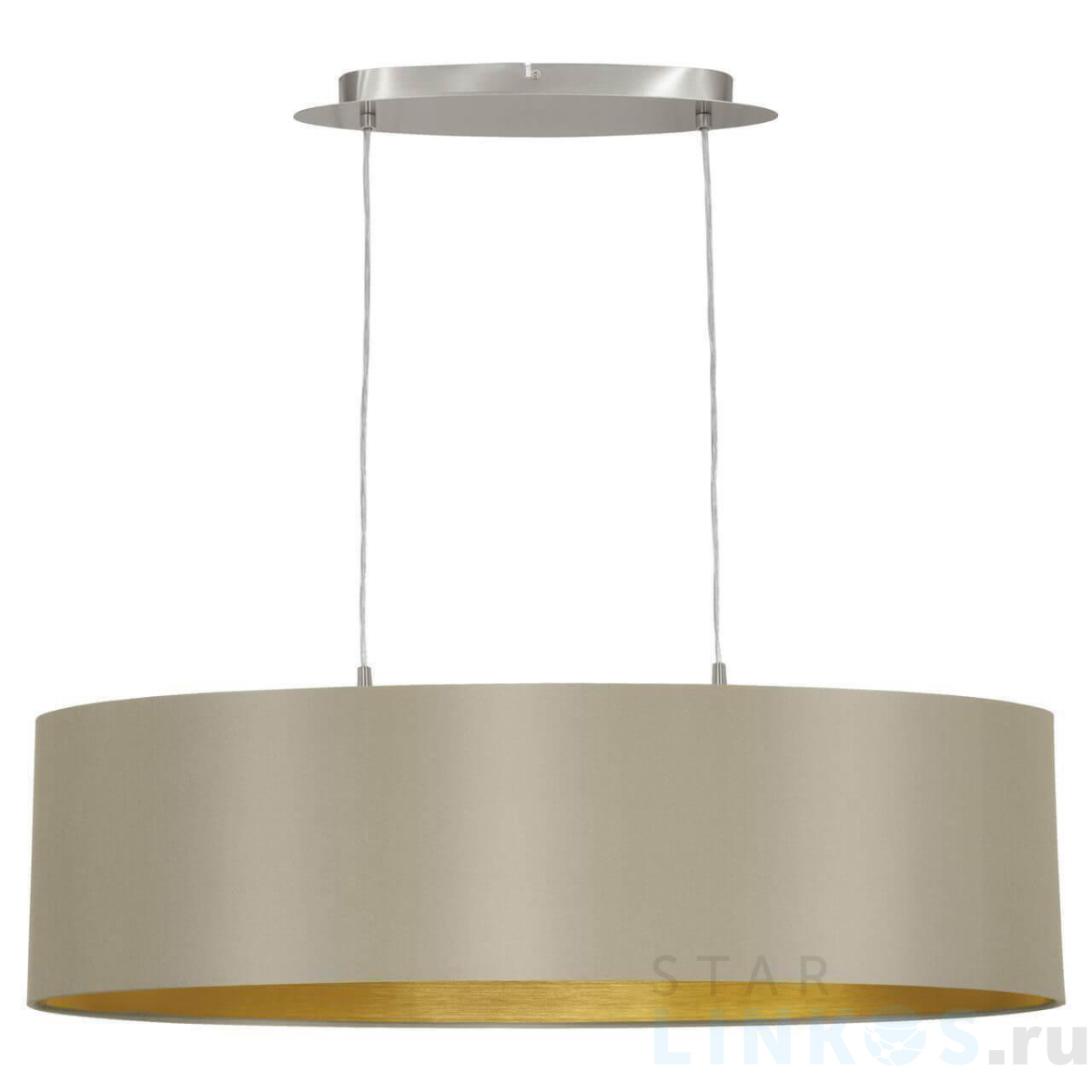 Поставщик рекомендует использовать лампы накаливания с цоколем E27 для освещения площади 6,7 м2. Подвесной светильник Eglo Maserlo 31613 в современном стиле используется в интерьере кафе и ресторанов с установкой на потолок.
