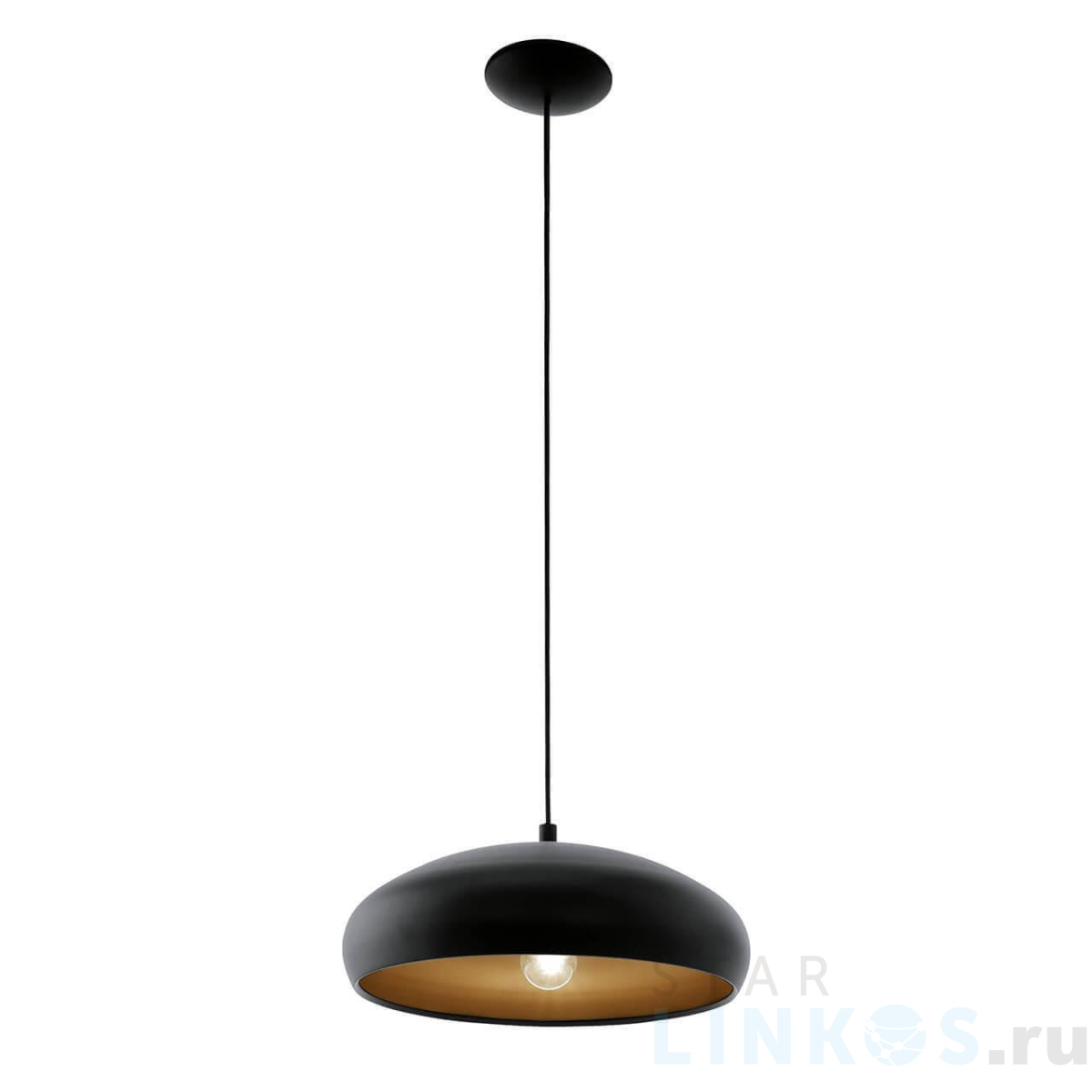 Поставщик рекомендует использовать лампы накаливания с цоколем E27 для освещения площади 3,3 м2. Подвесной светильник Eglo Mogano 1 94605 в используется в интерьере кухни с установкой на потолок.