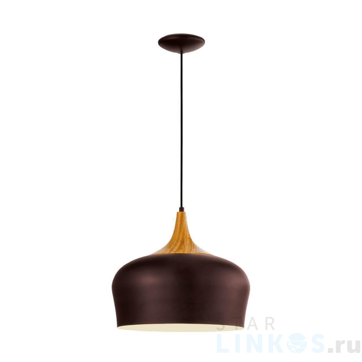 Поставщик рекомендует использовать лампы накаливания с цоколем E27 для освещения площади 3,3 м2. Подвесной светильник Eglo Obregon 95385 в используется в интерьере кухни с установкой на потолок.