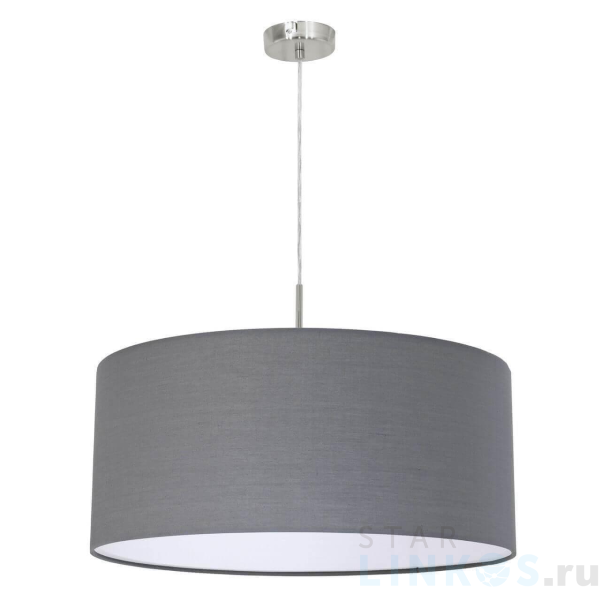 Поставщик рекомендует использовать лампы накаливания с цоколем E27 для освещения площади 3,3 м2. Подвесной светильник Eglo Pasteri 31577 в используется в интерьере гостиной с установкой на потолок.