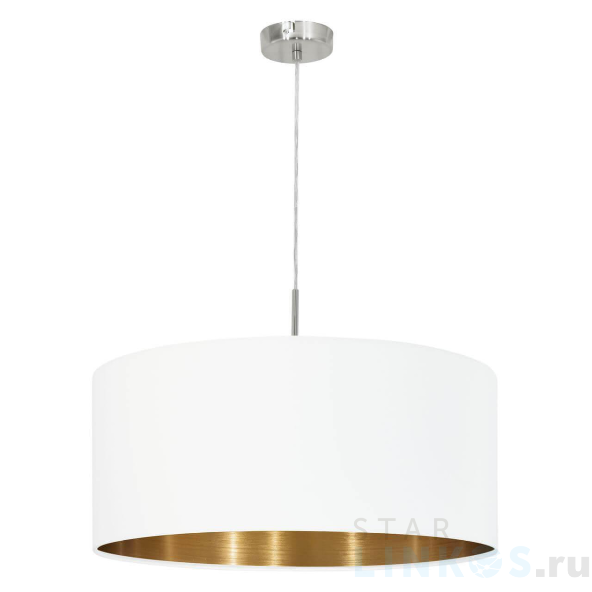 Поставщик рекомендует использовать лампы накаливания с цоколем E27 для освещения площади 3,3 м2. Подвесной светильник Eglo Pasteri 95045 в используется в интерьере спальни с установкой на потолок.