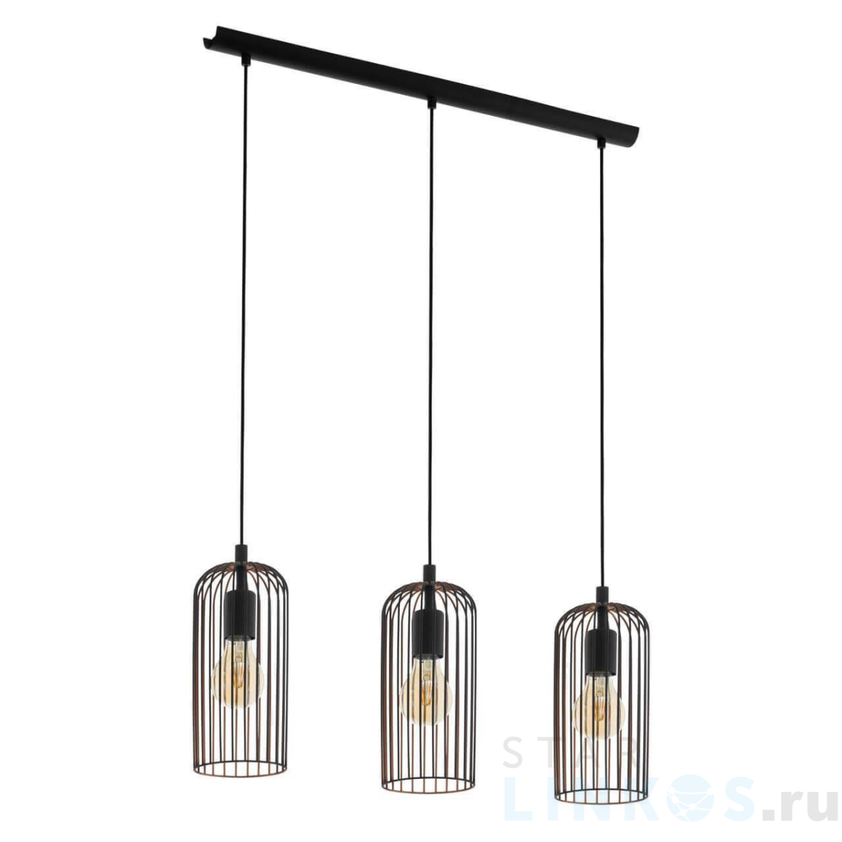 Поставщик рекомендует использовать лампы накаливания с цоколем E27 для освещения площади 10 м2. Подвесной светильник Eglo Roccamena 49645 в стиле Хай-Тек используется в интерьере кухни с установкой на потолок.